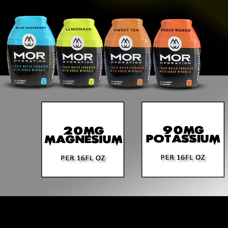MOR Hydration is a delicious, essential mineral-based flavor water enhancer that is added to daily drinking water and can be consumed throughout the day.